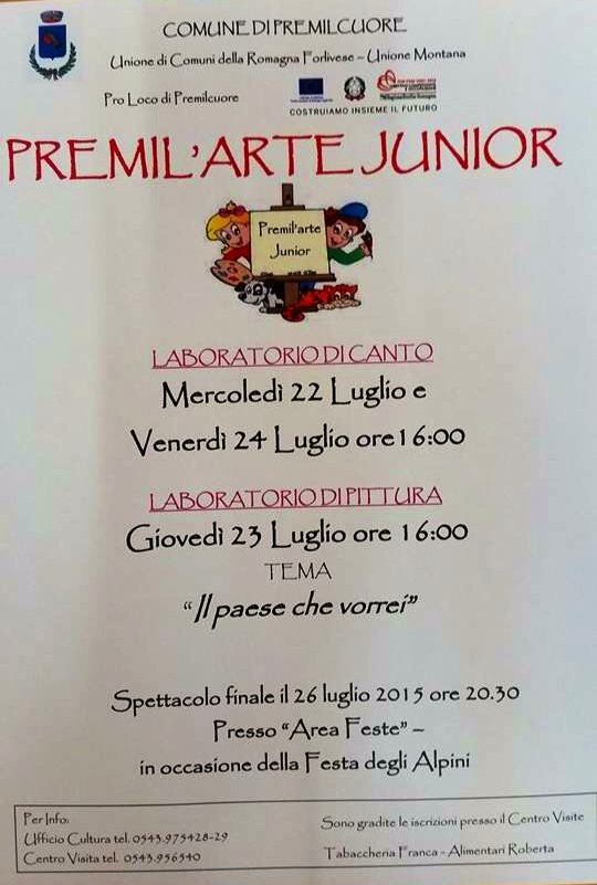 Torna premil’arte junior! Ritornano i laboratori di canto e pittura per bambini!!! Condividi: Fai clic per condividere su X (Si apre in una nuova finestra) X Fai clic per condividere su Facebook (Si apre in una nuova finestra) Facebook Mi piace Caricamento... Correlati Lascia un commento Cancella risposta Δ