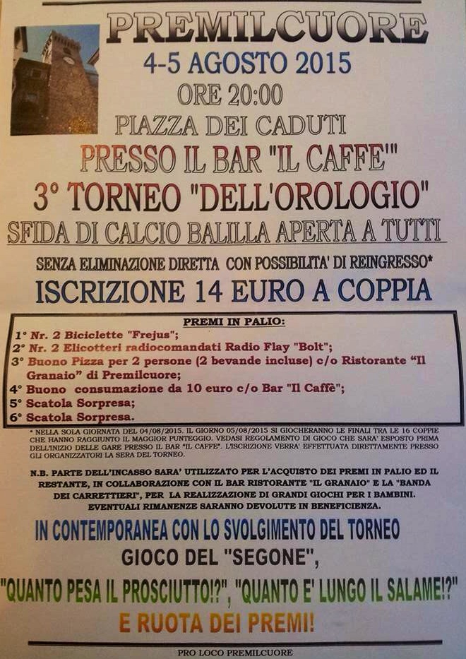 Torneo calcio balilla! Dal 4 al 5 agosto torneo di calcio balilla sotto l’orologio… Solo per polsi veloci! Condividi: Fai clic per condividere su X (Si apre in una nuova finestra) X Fai clic per condividere su Facebook (Si apre in una nuova finestra) Facebook Mi piace Caricamento... Correlati Lascia un commento Cancella risposta Δ
