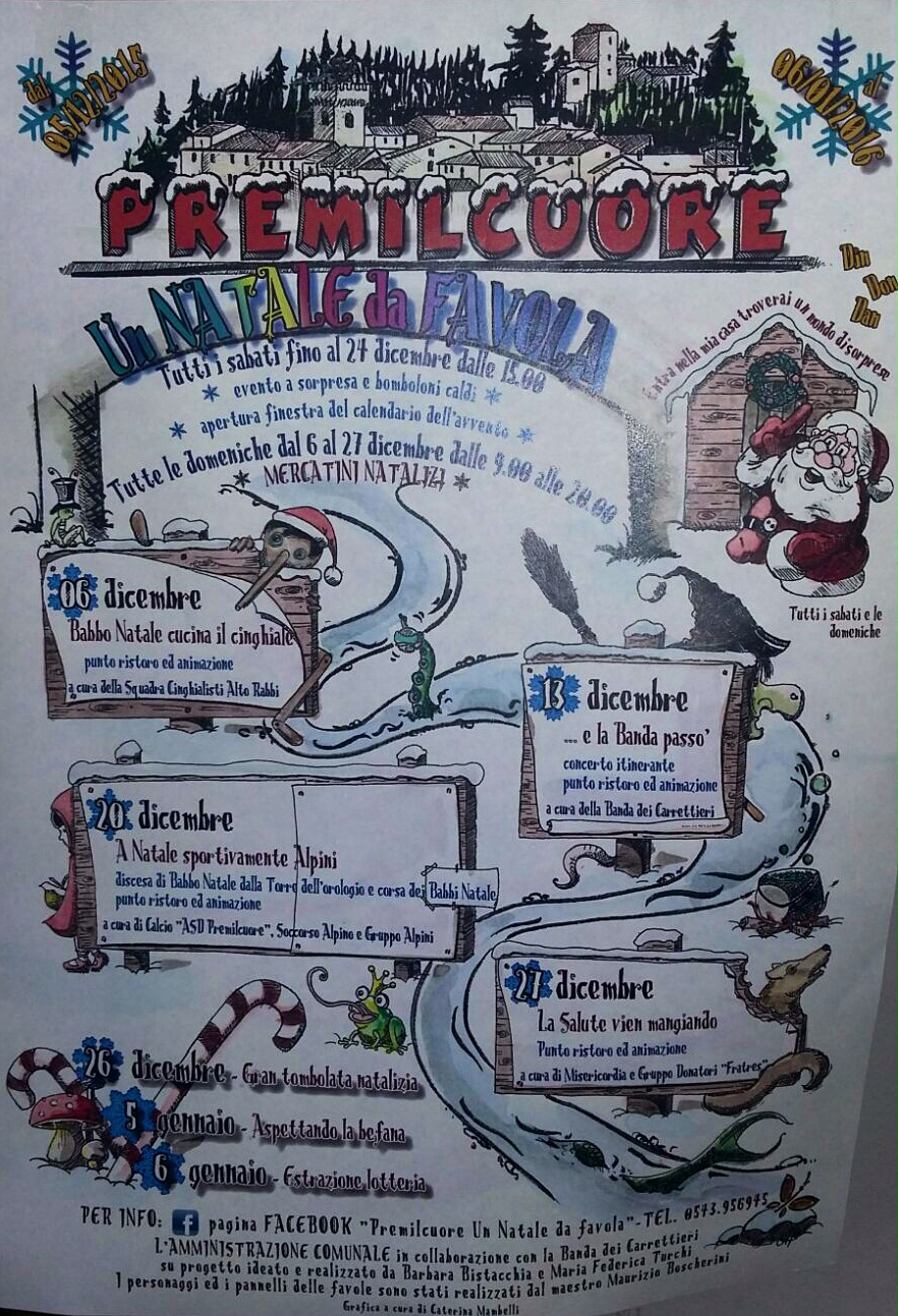 20 dicembre “a Natale sportivamente alpini” discesa di babbo Natale dalla torre dell’orologio e corsa dei babbi Natale con ristoro e animazione (a cura di ASD Premilcuore calcio, gruppo alpini e soccorso alpino).