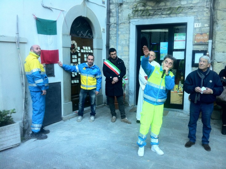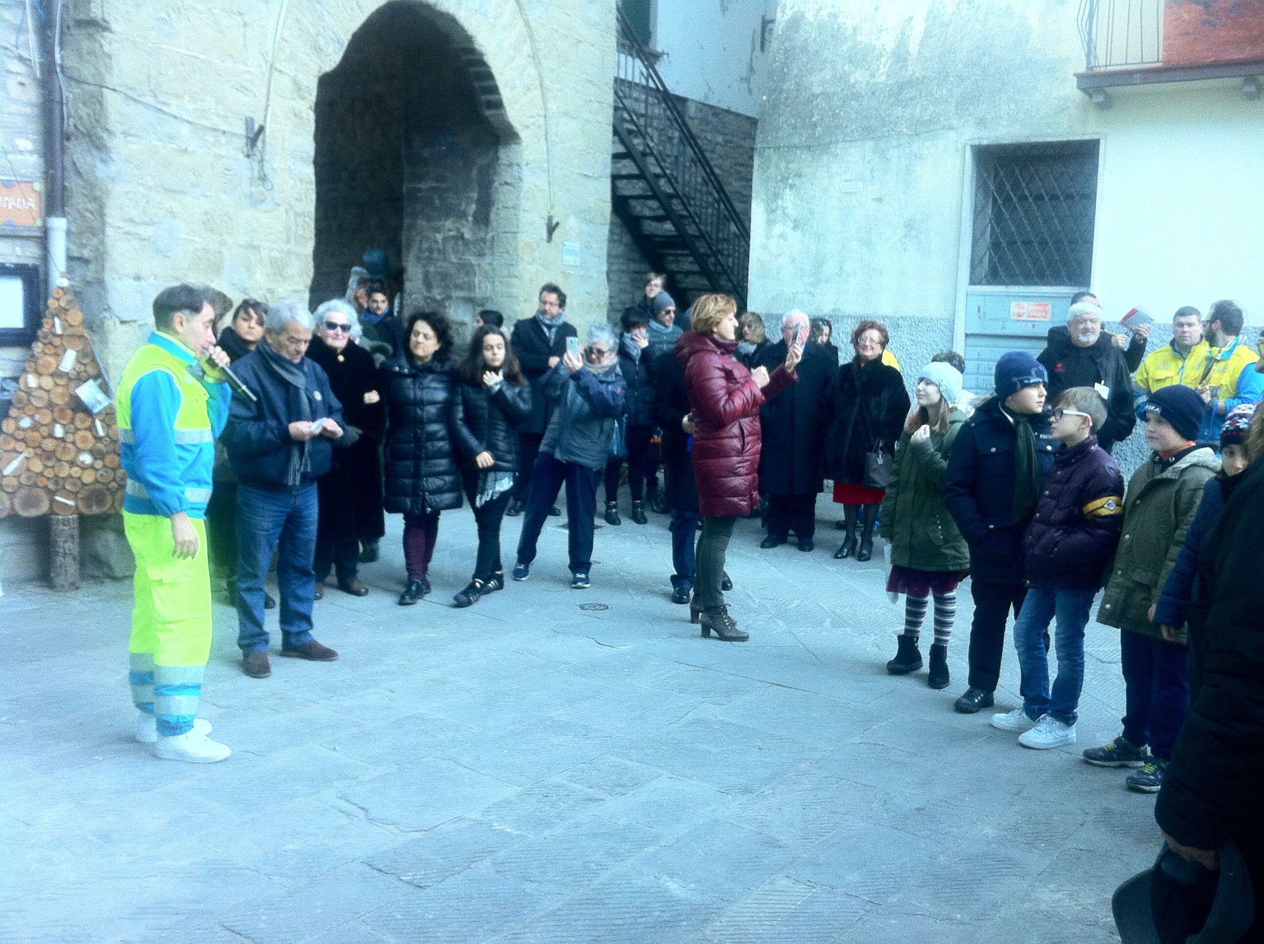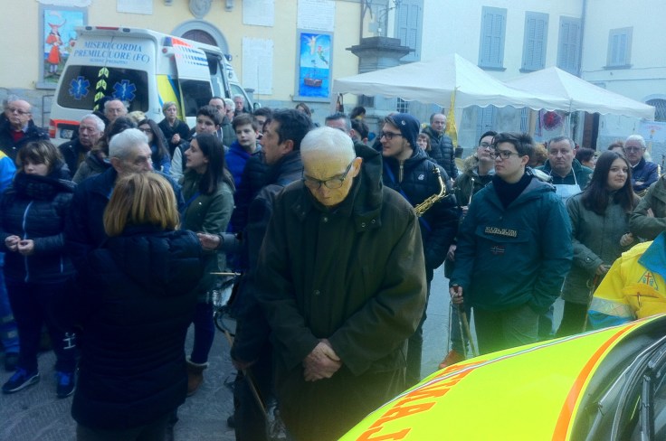 Oltre ad un numeroso gruppo di cittadini anche tanti volontari della Misericordia e del gruppo donatori Fratres, i familiari di Piero, il sindaco Marco Menghetti e naturalmente il nuovo governatore della misericordia Damiano Bartolini.