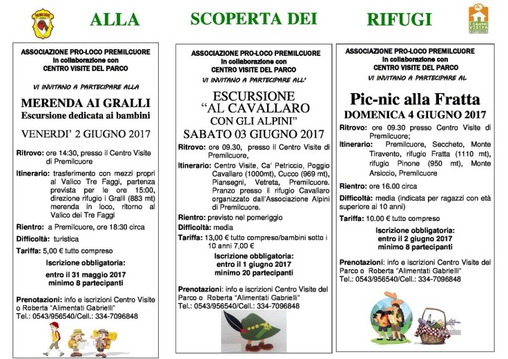 Il ponte del 2 giugno sarà una grande occasione per scoprire i rifugi intorno a Premilcuore. Venerdì 2 merenda ai Gralli, sabato 3 pranzo al Cavallaro e domenica 4 pic nic al Pinone. Escursioni per grandi e piccini alla scoperta del nostro parco!