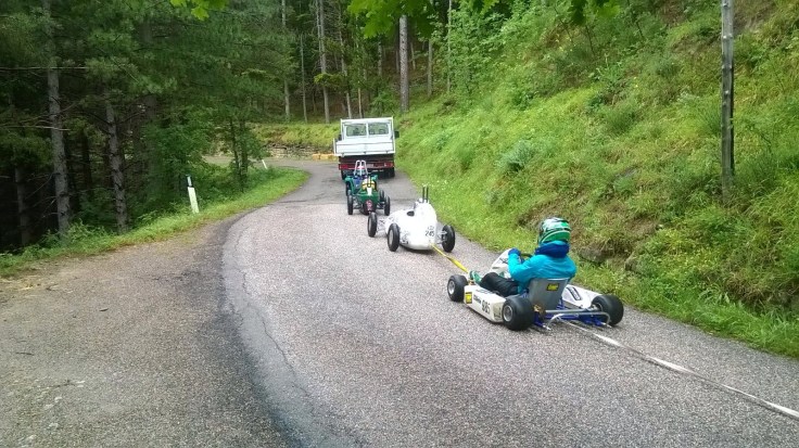 Alla fine di ogni prova i carioli venivano agganciati dai furgoni e riportati alla partenza per la prova successiva .