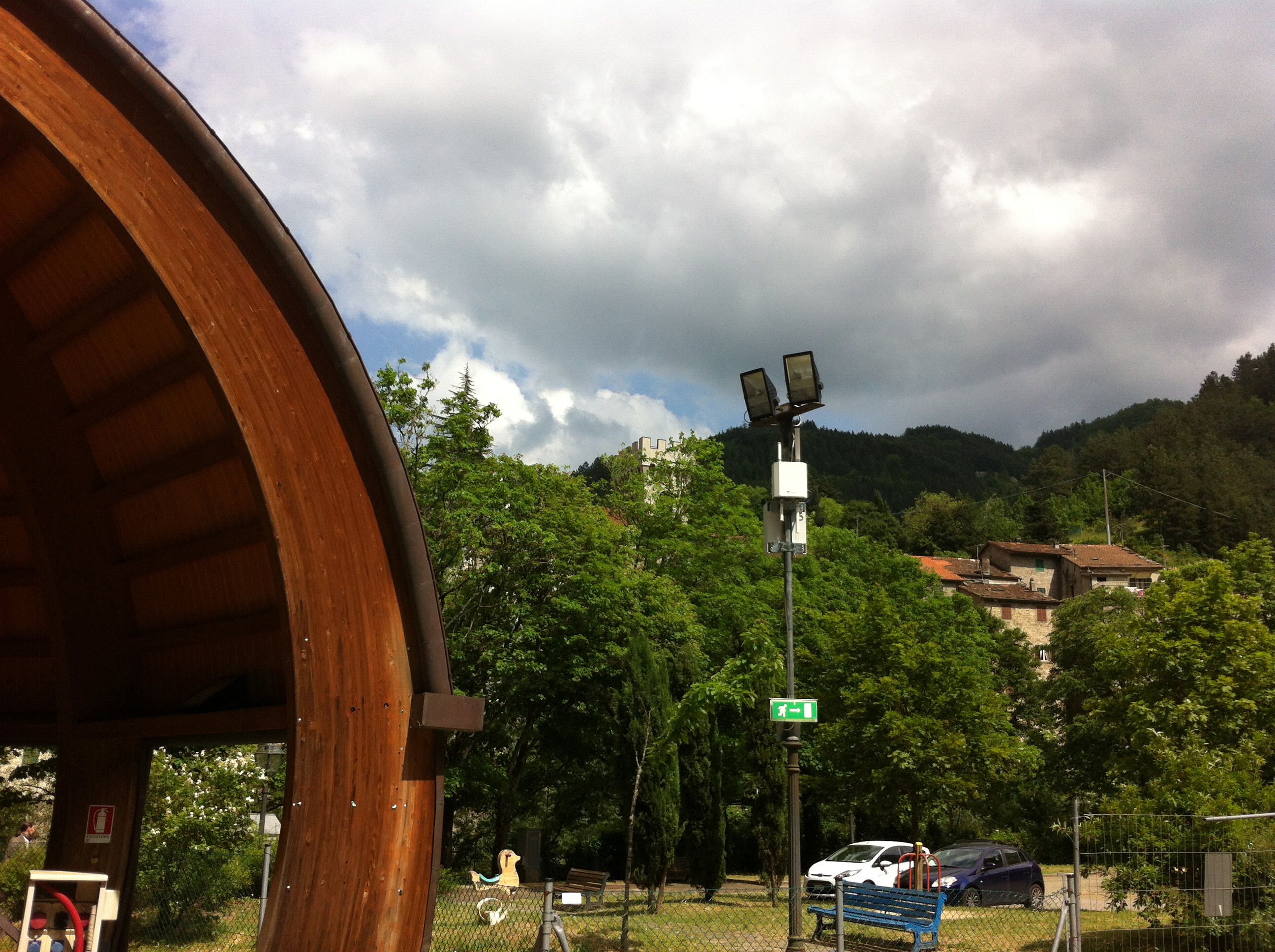 (nella foto un trasmettitore all’area feste sotto un palo per l’illuminazione)