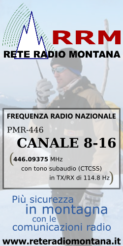 Per la vostra sicurezza in montagna suggeriamo il progetto https://www.reteradiomontana.it/ per l’utilizzo delle radio PMR-446