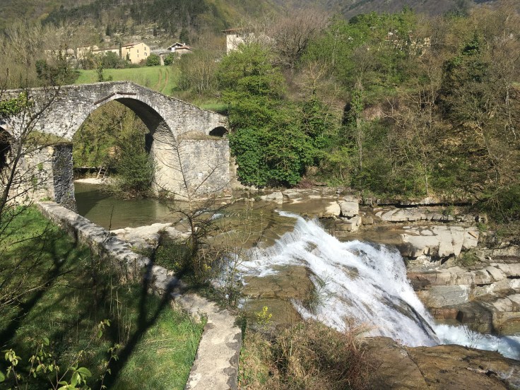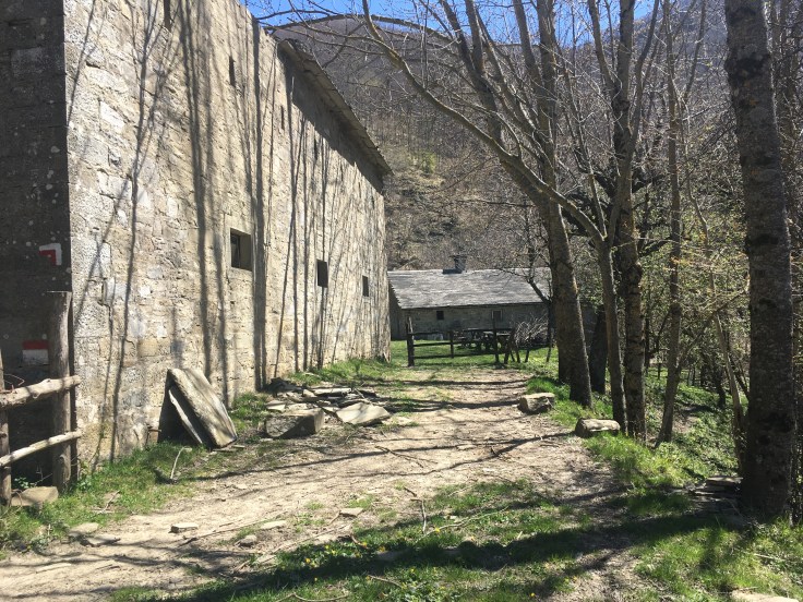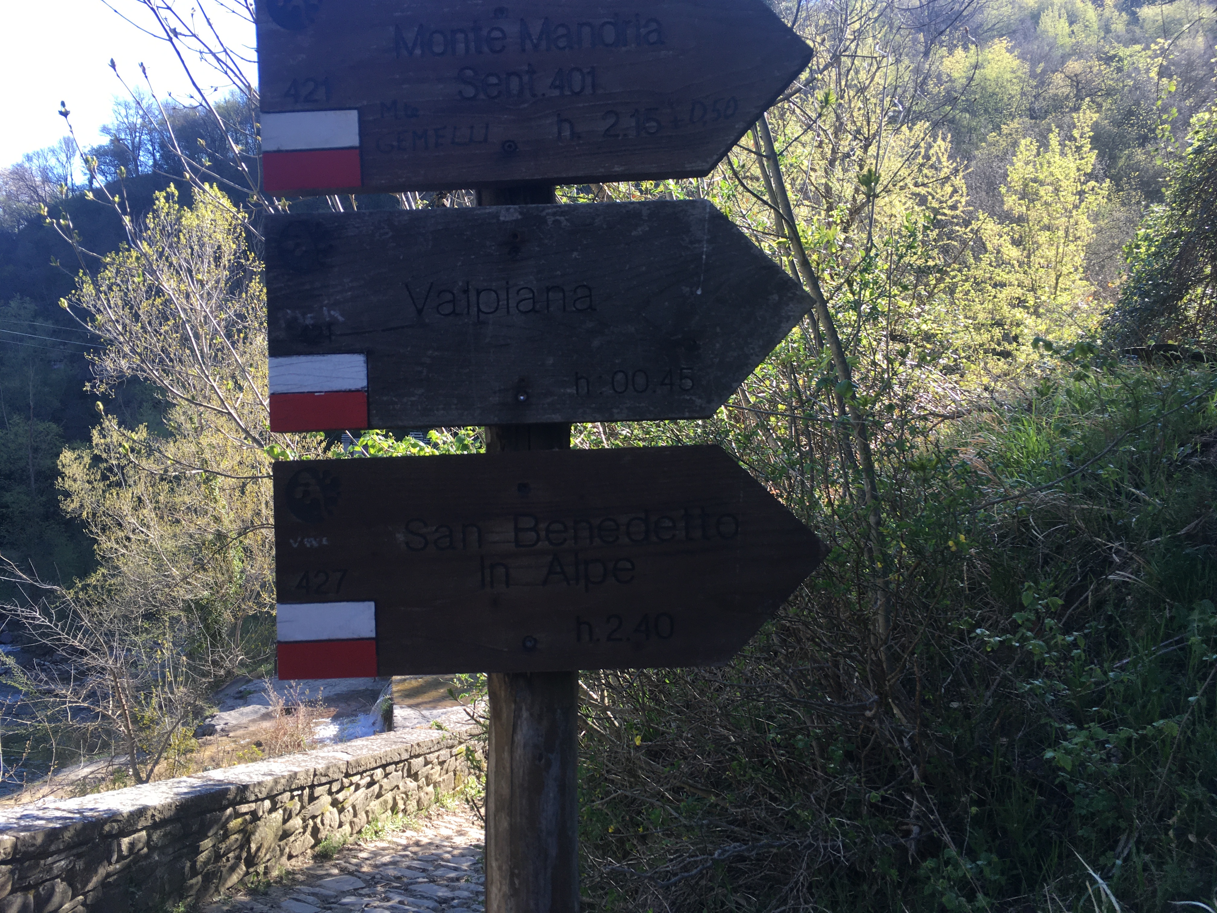Prima del ponte imbocchiamo il sentiero 427 per San Benedetto. Il sentiero è piuttosto lungo e costeggia il fiume Montone tra svariati sali scendi. A tratti taglia verso l’interno per poi ritrovare il fiume sempre alla sua destra orografica. Superati diverse case in rovina giungiamo al rifugio Prato Bovi e poi a fine sentiero giungiamo su strada asfaltata SS67