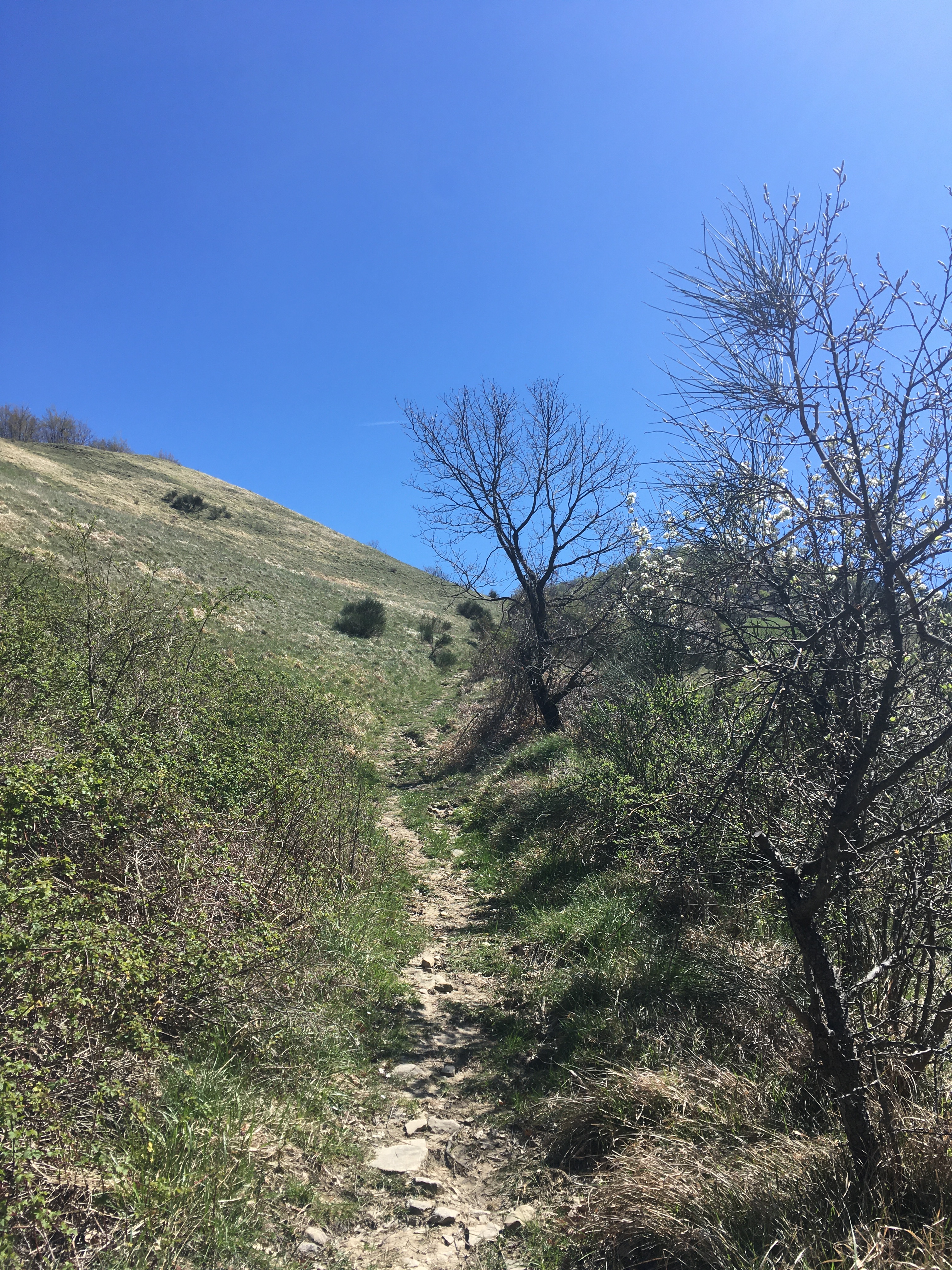 Da qui ripida salita nei campi fino a quando ci addentreremo nel bosco